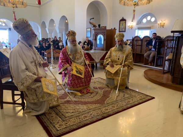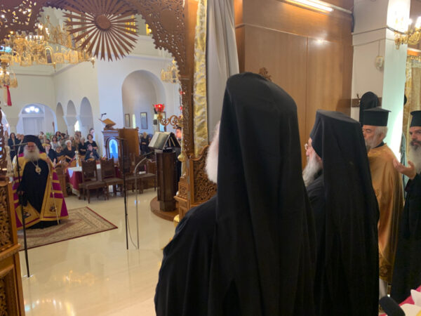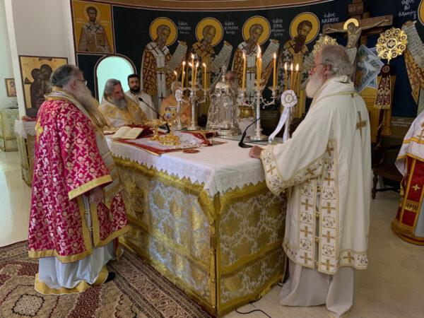 Στην Αρχιερατική Θεία Λειτουργία έλαβαν μέρος ο Παν/τος Προηγούμενος της Ιεράς Σταυροπηγιακής Μονής Τοπλού Αρχιμ. Φιλόθεος, ο Παν/τος Ηγούμενος της Ι. Μονής Καψά Αρχιμ. Μεθόδιος Περάκης, ο Πανοσιολ. Ιεροκήρυξ της Ιεράς Αρχιεπισκοπής Κρήτης Αρχιμ. Νικηφόρος Κουνάλης, ο Παν/τος Αρχιμ. Φιλόθεος Πηγιάκης από την Ι. Μονή Αγκαράθου, ο Αιδεσιμολ. Πρόεδρος του Συνδέσμου Εφημερίων της Ι. Μητροπόλεως Πρωτ. Ιωάννης Νεστοράκης, οι Κληρικοί της Ι.Α.Κ. Αιδεσιμολ. Πρωτ. του Οικουμενικού Θρόνου Γεώργιος Λαδουκάκης, Γεώργιος Μαλλιωτάκης, Αρχιερ. Επίτροπος Η΄ περιφ. της Ι.Α.Κ., καθώς και ο Αιδ/τος Πρωτ. Σάββας Λιναρδάκης, Αρχιερ. Επίτροπος Β΄ περιφέρειας της Ιεράς Μητροπόλεως.