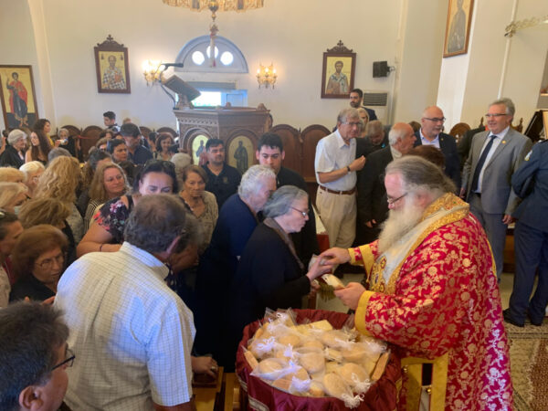 Ακολούθως εψάλη το πολυχρόνιον του εορτάζοντος Μητροπολίτου, ο οποίος διένειμε το αντίδωρο δεχόμενος παράλληλα τις ευχές του εκκλησιάσματος και ακολούθησε κέρασμα στην αίθουσα του παρακείμενου «Κέντρου Πολιτιστικής και Κοινωνικής Μέριμνας» της Ιεράς Μητροπόλεως.