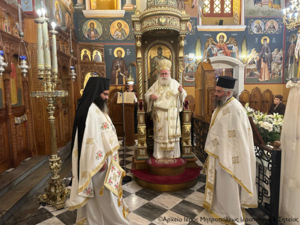 Πριν την απόλυση τέλεσε τα ιερά μνημόσυνα των μακαριστών Ειρήνης Μαραβελάκη (τρίμηνο), Καλλιόπης Μακρονικολάκη (τρίμηνο) και Ιωάννου Τζελεσάκη (ετήσιο).