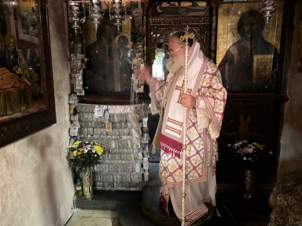Τέλος, ευχήθηκε σ᾿ όλους τους προσκυνητές χρόνια πολλά με τις πρεσβείες και την ενίσχυση του αγίου Ιωάννου του Θεολόγου, ο οποίος μας υποδεικνύει το καθήκον της έμπρακτης αγάπης προς τον Θεό και προς τον συνάνθρωπο.