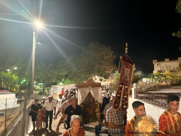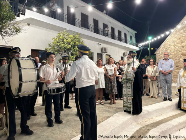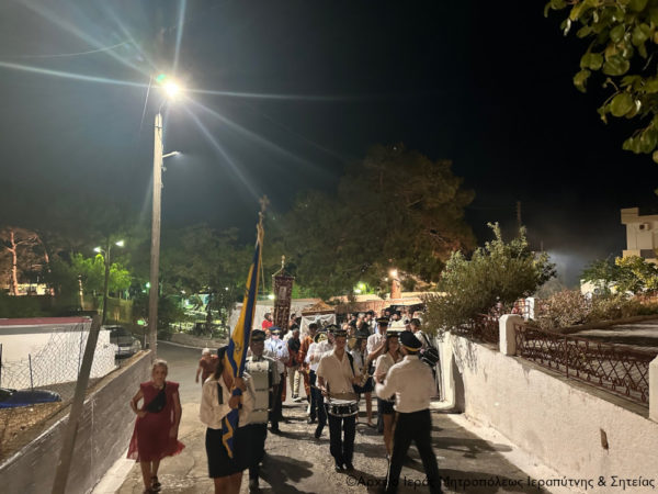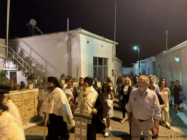 Ακολούθησε η καθιερωμένη λιτάνευση της θαυματουργής εικόνας της Παναγίας της Οδηγήτριας, κειμήλιο του 14ου αιώνα, στους κεντρικούς δρόμους του ιστορικού οικισμού Λιθινών με τη συμμετοχή των εκπροσώπων των τοπικών Αρχών και του περιεστώτος ευσεβούς λαού, υπό τους ήχους της Φιλαρμονικής του Δήμου Σητείας και με τη συνοδεία των στελεχών της ΕΔΕΑΚ Σητείας, που και φέτος μεριμνήσαν για την ευταξία και τη διευθέτηση των πολυάριθμων προσκυνητών.