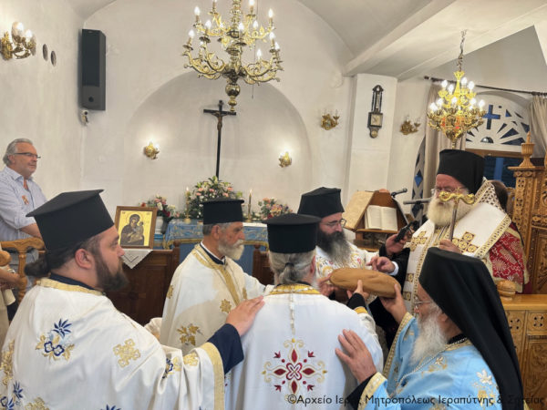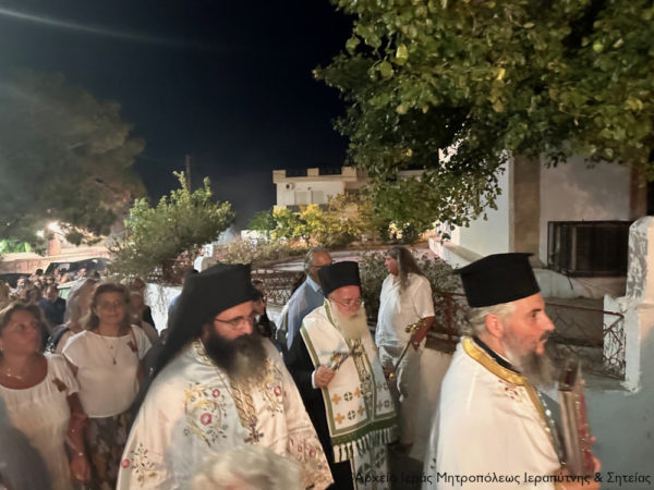 Στην ακολουθία έλαβαν μέρος ο Πρωτοσύγκελλος της Ι. Μητροπόλεως και Ηγούμενος της Ι. Μονής Τοπλού Αρχιμ. Αμβρόσιος Σκαρβέλης, ο Ηγούμενος της Ιεράς Μονής Κάψα Αρχιμ. Μέθοδιος Περράκης, ο συνταξ. Εφημέριος της Ενορίας Λιθινών Πρωτ. Αντώνιος Τσαγκαράκης, οι Εφημέριοι των Ενοριών Ρούσσας Εκκλησιάς πρωτ. Μιχαήλ Γαλανάκης, Καθεδρικού ναού Αγίας Αικατερίνης πόλεως Σητείας πρωτ. Νικόλαος Παθιάκης, Χανδρά Γεώργιος Μονιός και ο Διάκονος Θεμιστοκλής Μπεϊνάς, ενώ επικεφαλής του ιεροψαλτικού χορού ήταν ο Διευθυντής της Σχολής Βυζαντινής Μουσικής της Ι. Μητροπόλεως κ. Ιωάννης Αρώνη.