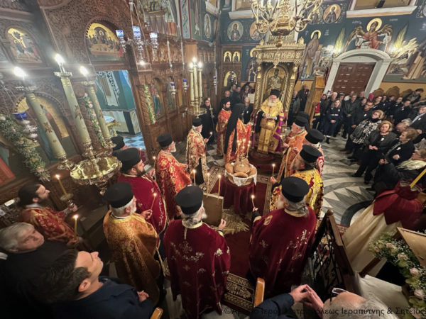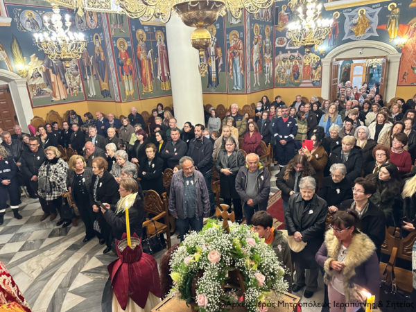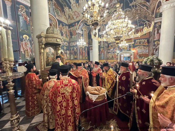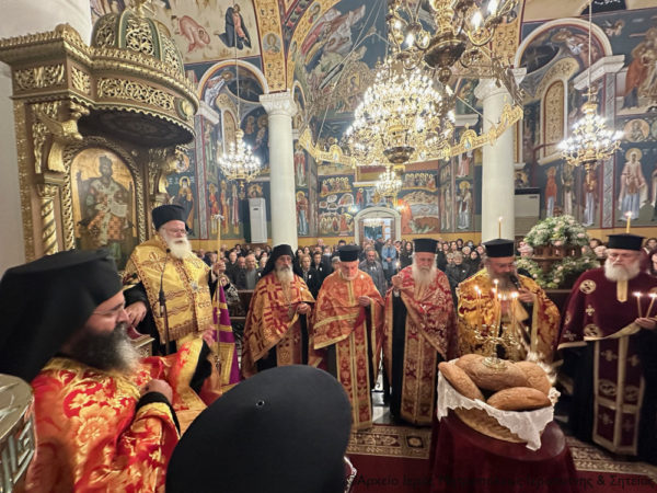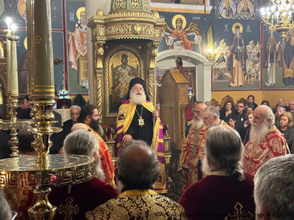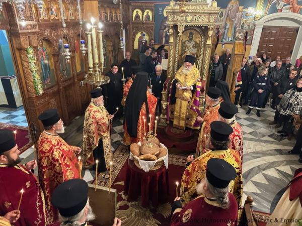 Στην ακολουθία χοροστάτησε, ευλόγησε τους άρτους και κήρυξε επίκαιρα τον θείο λόγο ο Σεβ. Μητροπολίτης Ιεραπύτνης και Σητείας κ. Κύριλλος. Κατά τη διάρκεια της Ακολουθίας του Αρχιερατικού Εσπερινού τέθηκε σε προσκύνηση των παρισταμένων πιστών τεμάχιο του Ιερού Λειψάνου του Αγίου Νεκταρίου, Μητροπολίτου Πενταπόλεως του Θαυματουργού, τα οποίο κόμισε από την Ιεράπετρα ο Σεβ. κ. Κύριλλος.