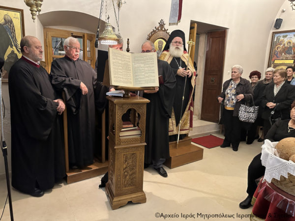 Στην ακολουθία χοροστάτησε ο Σεβασμιώτατος Μητροπολίτης Ιεραπύτνης και Σητείας κ. Κύριλλος, ο οποίος ευλόγησε τους προσφερόμενους άρτους και κήρυξε επίκαιρα τον θείο λόγο.