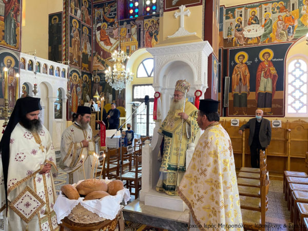 Στην Αρχιερατική Θεία Λειτουργία έλαβαν μέρος ο Πανοσιολ. Πρωτοσύγκελλος της Ι. Μητροπόλεως Αρχιμ. Αμβρόσιος Σκαρβέλης και οι Εφημέριοι των Ενοριών Κάτω Χωριού και Επισκοπής Οικονόμος Παντελεήμων Καββουσανός και Ιερεύς Ευάγγελος Γκιάλπης αντίστοιχα, καθώς και ο Ιερολ. Διάκονος π. Τίτος Ματαλλιωτάκης, ενώ επικεφαλής του χορού των ιεροψαλτών ήταν ο Πρωτοψάλτης και Διευθυντής της Σχολής Βυζ. Μουσικής της Ι. Μητροπόλεως «Άγιος Ανδρέας ο Κρήτης» κ. Ιω. Αρώνης. Παρέστησαν αρκετοί πιστοί εντός του πανηγυρίζοντος ναού τηρώντας σχολαστικά τα μέτρα προστασίας από τον κορωνοϊό, μεταξύ των οποίων ήταν η Αντιδήμαρχος του Δήμου Ιεράπετρας κ. Χρύσα Χατζημαρκάκη.