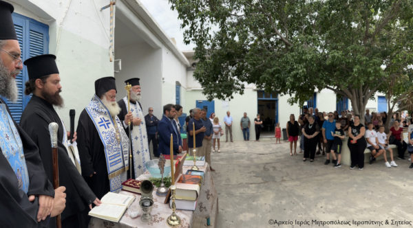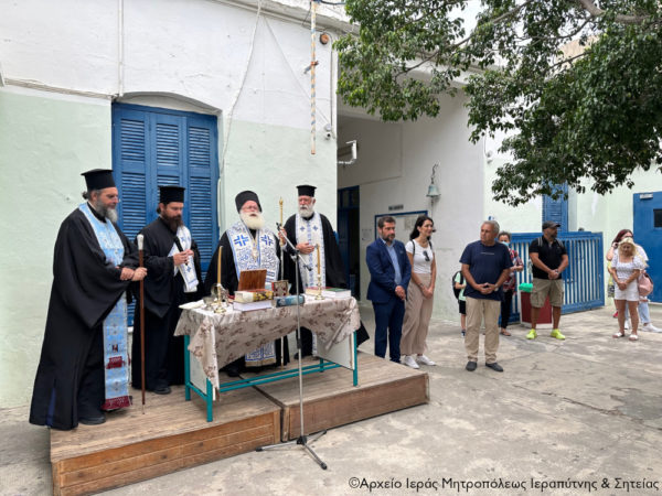 Αρχικά τέλεσε τον Αγιασμό στο 3ο Γυμνάσιο και το Επαγγελματικό Λύκειο (ΕΠΑ.Λ.) Ιεράπετρας, όπου τον υπεδέχθησαν με πολύ χαρά και σεβασμό οι Διευθύντριες των δύο Σχολείων, κ. Χρυσοβαλάντης Ψαρουδάκης και κ. Εμμανουήλ Γιακουμάκης αντίστοιχα, οι εκπαιδευτικοί, όπως και οι μαθητές και οι γονείς των παιδιών.
