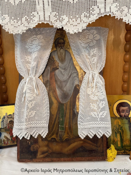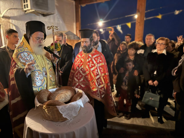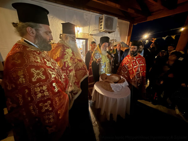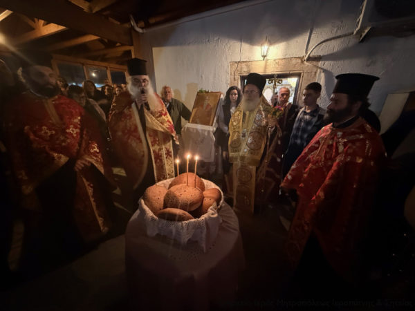 Στην ακολουθία χοροστάτησε ο Σεβ. Μητροπολίτης Ιεραπύτνης και Σητείας κ. Kύριλλος, ο οποίος πριν την Απόλυση ευλόγησε τους άρτους στο προαύλειο του ναού.