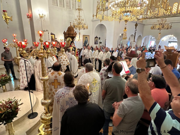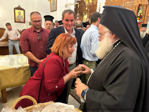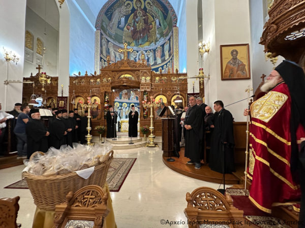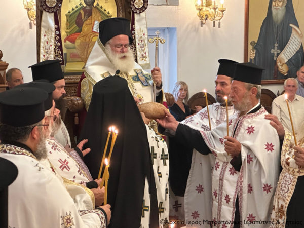 Στην ακολουθία χοροστάτησε και ευλόγησε τους προσφερόμενους άρτους ο εορτάζων Σεβασμιώτατος Μητροπολίτης κ. Κύριλλος, ενώ παρέστησαν συμπροσευχόμενοι εκ του Ιερού Βήματος ο Σεβασμιώτατος Μητροπολίτης Κισάμου και Σελίνου κ. Αμφιλόχιος και ο Σεβασμιώτατος Μητροπολίτης Κυδωνίας και Αποκορώνου κ. Δαμασκηνός.