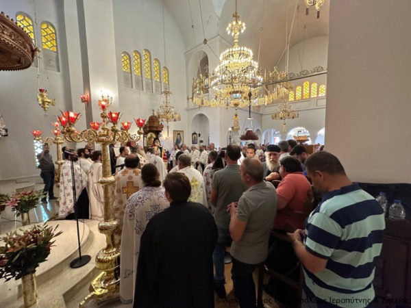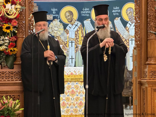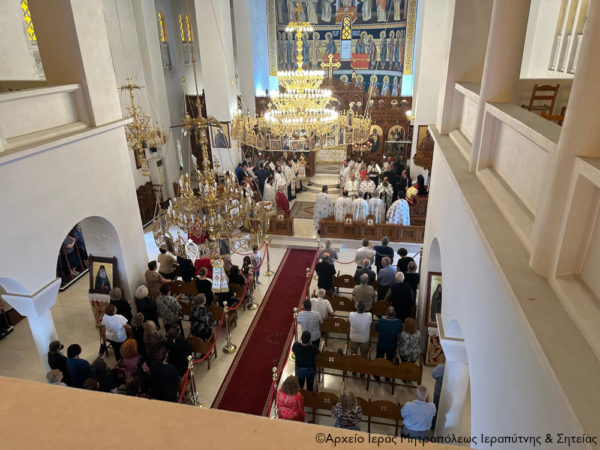Όπως υπογράμμισε, «συναχθήκαμε στον περικαλλή αυτό ναό, που ανήγειρε ο μακαριστός Μητροπολίτης κυρός Φιλόθεος ο Β΄ (Βουζουνεράκης), για να εκφράσουμε την αγάπη και τις ευχές μας στον Σεπτό Ποιμανάρχη σας. Και η συνάθροιση ιερού κλήρου και ευσεβούς λαού γίνεται στον ιερό ναό, όπου είναι ο τόπος σύναξης των πιστών και ο χώρος όπου συντελείται τα μυστήριο της σωτηρίας μας, συμμετέχοντας στη μυστηριακή ζωή της Εκκλησίας και πορευόμενοι από το «κατ’ είκόνα» στο «καθ’ ομοίωσιν».