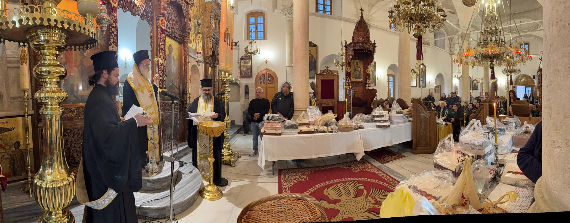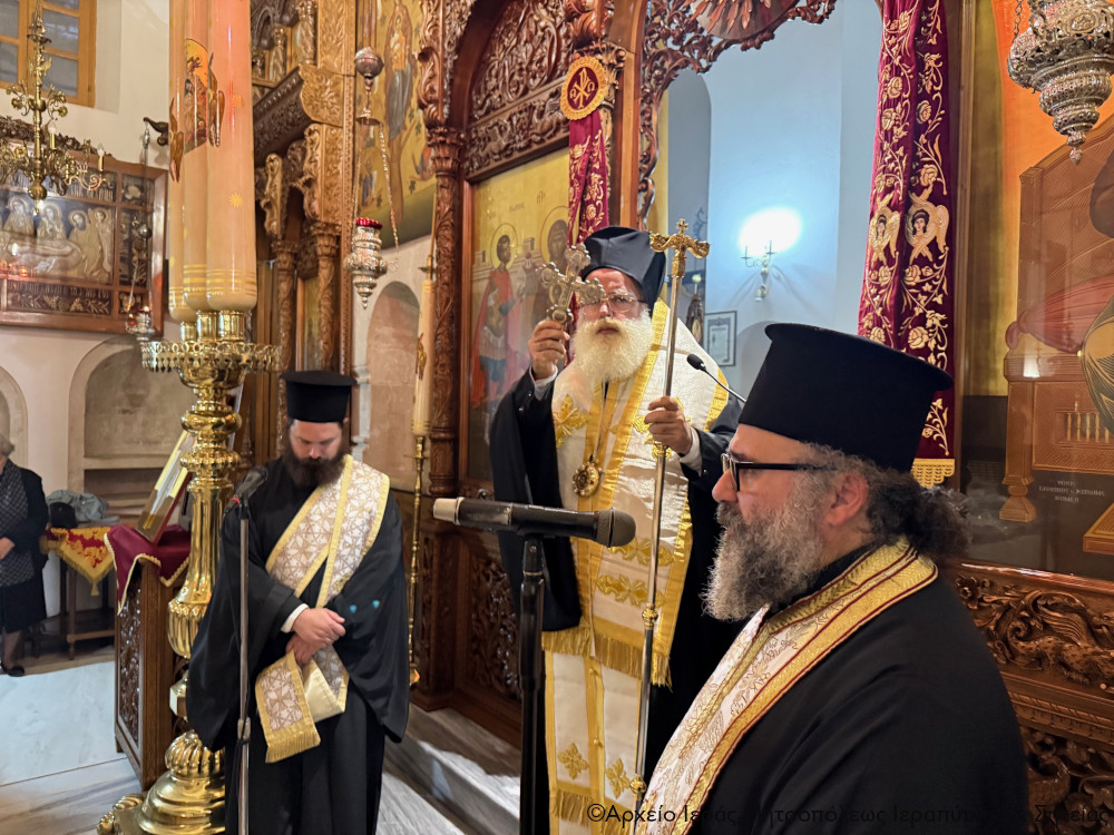 Αμέσως μετά τον Νεκρώσιμο Κανόνα που εψάλη στον Εσπερινό, προέστη στο διατεταγμένο ιερό Μνημόσυνο υπέρ αναπαύσεως των ψυχών «πάντων τῶν ἐπ᾽ ἐλπίδι ἀναστάσεως ζωῆς αἰωνίου κεκοιμημένων εὐσεβῶν καί ὀρθοδόξων χριστιανῶν, βασιλέων, πατριαρχῶν, ἀρχιερέων, ἱερέων, ἱερομονάχων, διακόνων, μοναχῶν, πατέρων, προπατόρων, πάππων, προπάππων, γονέων, συζύγων, τέκνων, ἀδελφῶν καί συγγενῶν ἡμῶν ἀπ᾽ ἀρχῆς μέχρι καί τῶν ἐσχάτων…» και μνημόνευσε τα ονόματα των κεκοιμένων μαζί με τον Εφημέριο του ναού Πρωτ. Αθανάσιο Ταρλαντέζο ενώπιον των κολλύβων, ευχόμενος μετά την Απόλυση ο Κύριος της ζωής και του θανάτου να αναπαύει τις ψυχές των προσφιλών κεκοιμημένων αδελφών μας μετά των Αγίων και των Δικαίων και εν Χώρα Ζώντων.