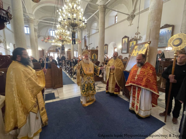 Ο Μητροπολίτης Ιεραπύτνης και Σητείας κ. Κύριλλος ιερούργησε και κήρυξε στον Ιερό Μητροπολιτικό Ναό Αγίου Γεωργίου Ιεράπετρας, την Κυριακή του Ασώτου. Πριν την απόλυση τέλεσε τα τεσσακονθήμερα μνημόσυνα των μακαριστών Χριστοδούλου Ζαφείρη και Μιχαήλ Σπηλιαρωτάκη.