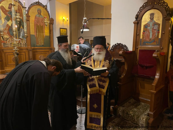 Την Κυριακή της Τυρινής, 26 Φεβρουαρίου 2023 στον κατάμεστο από πιστούς Ιερό Καθεδρικό Ναό Αγίας Φωτεινής Ιεράπετρας, τελέσθηκε η ακολουθία του Κατανυκτικού Εσπερινού της Συγγνώμης, χοροστατούντος του Μητροπολίτου Ιεραπύτνης και Σητείας κ. Κυρίλλου και με την παρουσία όλων των Κληρικών της ευρύτερης περιφέρειας της Ιεράπετρας.