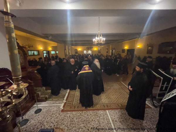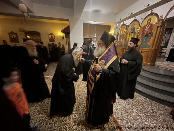 Στο τέλος της ακολουθίας του Κατανυκτικού Εσπερινού, που τέλεσε ο Αρχιμ. Αμβρόσιος Σκαρβέλης, το εκκλησίασμα έλαβε την συγχωρητική ευχή του Σεβασμιωτάτου κ. Κυρίλλου, εν όψει της εισόδου στην Αγία και Μεγάλη Τεσσαρακοστή.