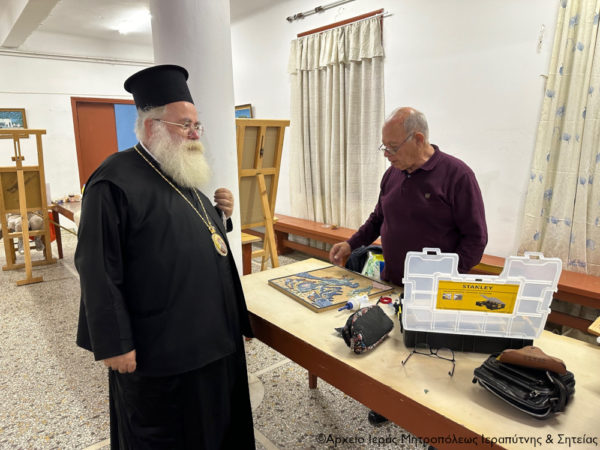 Ο Σεβασμιώτατος Μητροπολίτης Ιεραπύτνης και Σητείας κ. Κύριλλος επισκέφτηκε το απόγευμα της Τετάρτης 20 Νοεμβρίου 2024 τη Σχολή Αγιογραφίας και Ψηφιδωτού της Μητροπόλεως στην Ιεράπετρα, που λειτουργεί στην αίθουσα του πρώην Οικοτροφείου.