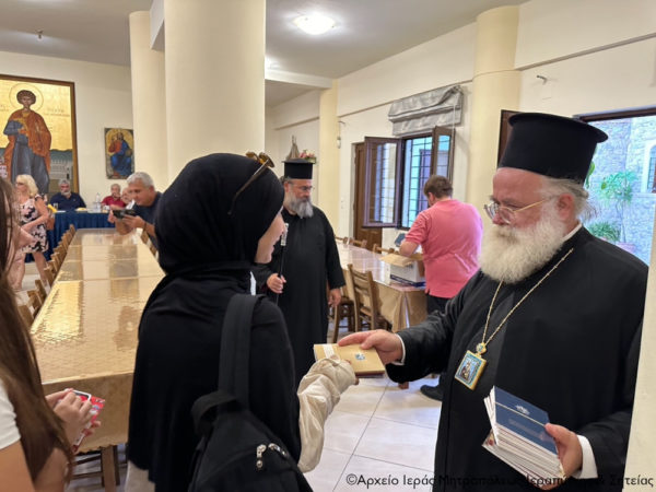 Ακολούθησε μικρή δεξίωση στην αίθουσα εκδηλώσεων του ναού, που επιμελήθηκε ο Προϊστάμενος Αιδεσιμολ. πρωτ. Αθανάσιος Ταρλαντέζος και οι συνεργάτες του. Στο τέλος, ο Σεβ. κ. Κύριλλος διένειμε στους μαθητές αναμνηστικά κάρτ ποστάλ των σημαντικών ιστορικών μνημείων, φορητών εικόνων και τοιχογραφιών της Ιεράς Μητροπόλεως, και τους ευχήθηκε καλή πρόοδο στις σπουδές τους και η παραμονή τους στην Ιεράπετρα να είναι γόνιμη και δημιουργική.