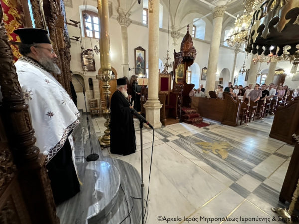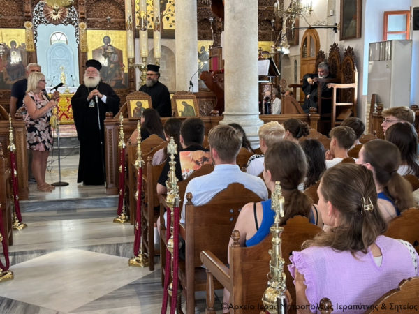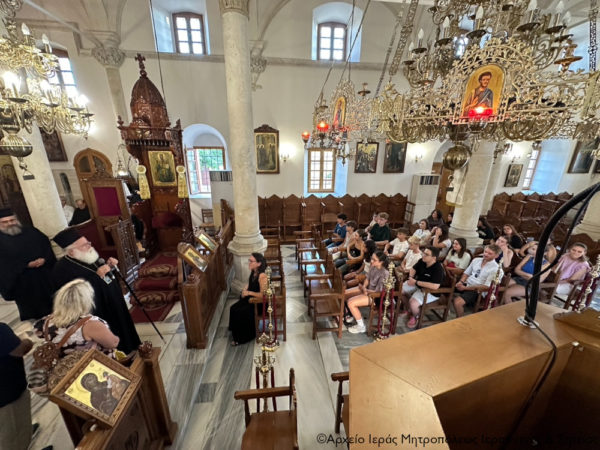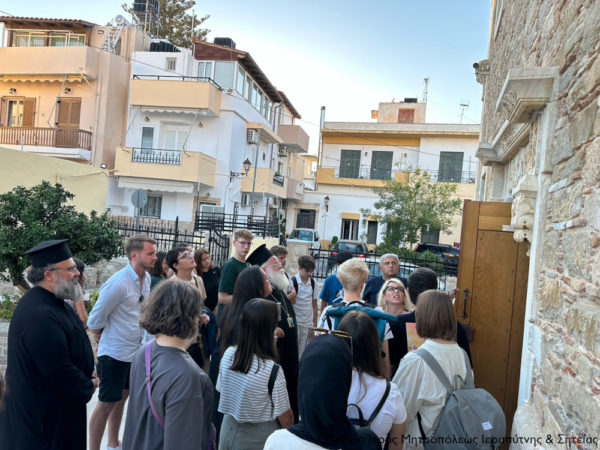 Το απόγευμα του Σαββάτου 21 Σεπτεμβρίου 2024 ο Σεβ. Μητροπολίτης Ιεραπύτνης και Σητείας κ. Kύριλλος χοροστάτησε στην Ακολουθία του Εσπερινού στον Ιερό Μητροπολιτικό Ναό του Αγίου Γεωργίου στην Ιεράπετρα. Την ακολουθία του Εσπερινού είχαν την ευκαιρία να παρακολουθήσουν Γερμανοί μαθητές από Γυμνάσια και Λύκεια της πόλης Ντίσελντορφ και μαθητές του 1ου Γυμνασίου Ιεράπετρας, στο πλαίσιο του προγράμματος Erasmus+, συνοδευόμενοι από τους καθηγητές τους.