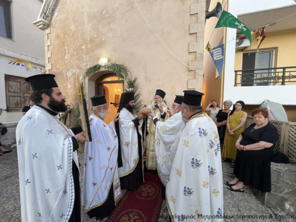 Στην ακολουθία του Αρχιερατικού Εσπερινού έλαβαν μέρος ο Πανοσιολ. Πρωτοσύγκελλος της Ι. Μητροπόλεως Αρχιμ. Αμβρόσιος Σκαρβέλης, οι συνταξιούχοι Αιδεσιμ. Πρωτ. Ιωάννης Κατσογρεσάκης, Εφημέριος της Ενορίας Λάστρου και Αιδεσιμ. Πρωτ. Εμμανουήλ Συντυχάκης, Εφημέριος της Ενορίας Σφάκας, o Αιδεσιμ. Πρωτ. Νικόλαος Φραγκίδης, Εφημέριος της Ενορίας Τουρλωτής και Αρχιερατικός Επίτροπος Ζ΄ Αρχιερ. Περιφ., ο Αιδεσιμολ. Πρωτ. Σταμάτιος Μηλαθιανάκης, Κληρικός της Ιεράς Αρχιεπισκοπής Κρήτης και Εφημέριος Ενορίας Παναγίας Καμαριανής πόλεως Ηρακλείου και ο Ιερολογιώτατος Διάκονος Θεμιστοκλής Μπεϊνάς, ενώ παρέστησαν αρκετοί ευσεβεις χριστιανοί της περιοχής.