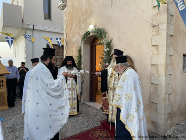 Μέγας Αρχιερατικός Εσπερινός της εορτής της μνήμης του Αγίου ενδόξου Αποστόλου Τίτου, πρώτου Επισκόπου και Πάτρωνος της Εκκλησίας της Κρήτης, τελέσθηκε στον φερώνυμο πανηγυρίζοντα Ιερό Ναό της Ενορίας Τουρλωτής στον τουριστικό παραθαλάσσιο οικισμό στο Μόχλος Σητείας. Στην ακολουθία χοροστάτησε ο Μητροπολίτης Ιεραπύτνης και Σητείας κ. Κύριλλος, ο οποίος ευλόγησε τους άρτους και κήρυξε επίκαιρα τον θείο λόγο.