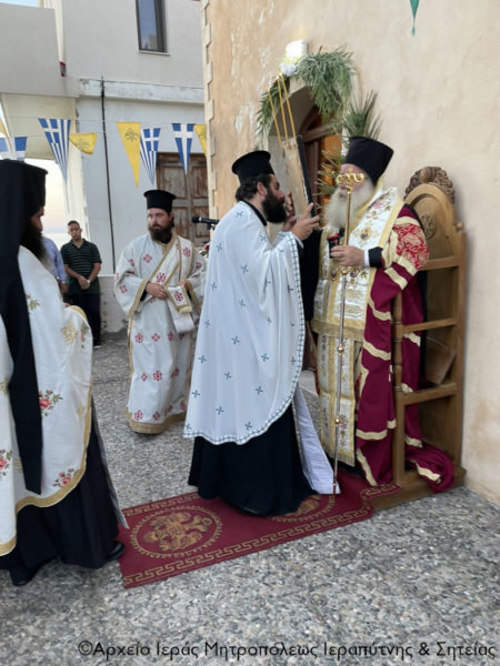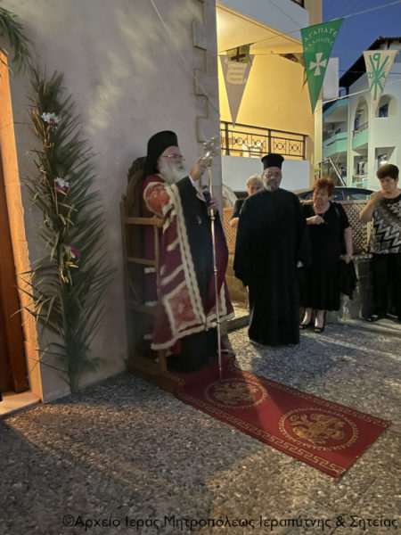 Στην ακολουθία του Αρχιερατικού Εσπερινού έλαβαν μέρος ο Πανοσιολ. Πρωτοσύγκελλος της Ι. Μητροπόλεως Αρχιμ. Αμβρόσιος Σκαρβέλης, οι συνταξιούχοι Αιδεσιμ. Πρωτ. Ιωάννης Κατσογρεσάκης, Εφημέριος της Ενορίας Λάστρου και Αιδεσιμ. Πρωτ. Εμμανουήλ Συντυχάκης, Εφημέριος της Ενορίας Σφάκας, o Αιδεσιμ. Πρωτ. Νικόλαος Φραγκίδης, Εφημέριος της Ενορίας Τουρλωτής και Αρχιερατικός Επίτροπος Ζ΄ Αρχιερ. Περιφ., ο Αιδεσιμολ. Πρωτ. Σταμάτιος Μηλαθιανάκης, Κληρικός της Ιεράς Αρχιεπισκοπής Κρήτης και Εφημέριος Ενορίας Παναγίας Καμαριανής πόλεως Ηρακλείου και ο Ιερολογιώτατος Διάκονος Θεμιστοκλής Μπεϊνάς, ενώ παρέστησαν αρκετοί ευσεβεις χριστιανοί της περιοχής.
