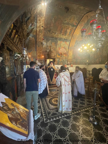 Στην ακολουθία του Μεγάλου Πανηγυρικού Εσπερινού του Σαββάτου και των Προεορτίων της εορτής της Κοιμήσεως της Θεοτόκου στην ιστορική Ιερά Μονή Παναγίας Φανερωμένης Ιεράπετρας χοροστάτησε χθες ο Μητροπολίτης Ιεραπύτνης και Σητείας κ. Κύριλλος.