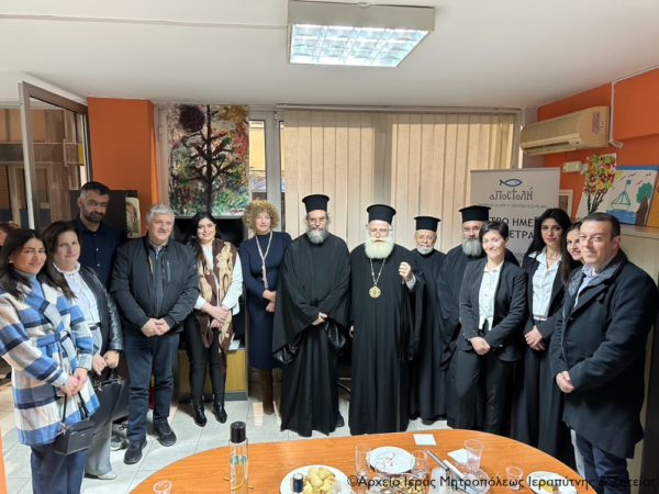 Το απόγευμα της Δευτέρας 17 Φεβρουαρίου 2025, ο Σεβ. Μητροπολίτης Ιεραπύτνης και Σητείας κ. Κύριλλος, κατόπιν προσκλήσεως της Επιστημονικής υπεύθυνης και του Διοικητικού υπεύθυνου του Κέντρου Ημέρας Ιεράπετρας της Μη Κυβερνητικής Οργάνωσης της Ιεράς Αρχιεπισκοπής Αθηνών «Αποστολή», ευλόγησε και έκοψε τη Βασιλόπιτα στα γραφεία του Κέντρου στην πόλη της Ιεράπετρας.