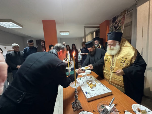 Το απόγευμα της Δευτέρας 17 Φεβρουαρίου 2025, ο Σεβ. Μητροπολίτης Ιεραπύτνης και Σητείας κ. Κύριλλος, κατόπιν προσκλήσεως της Επιστημονικής υπεύθυνης και του Διοικητικού υπεύθυνου του Κέντρου Ημέρας Ιεράπετρας της Μη Κυβερνητικής Οργάνωσης της Ιεράς Αρχιεπισκοπής Αθηνών «Αποστολή», ευλόγησε και έκοψε τη Βασιλόπιτα στα γραφεία του Κέντρου στην πόλη της Ιεράπετρας.