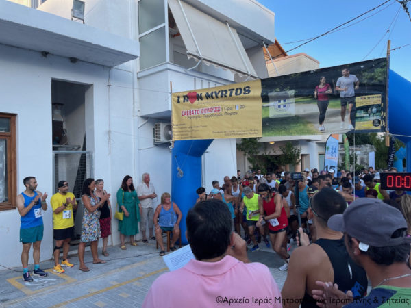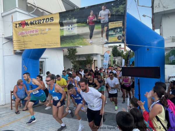 Το απόγευμα του Σαββάτου 30 Ιουλίου 2022 ο Σεβασμιώτατος Μητροπολίτης Ιεραπύτνης κ. Κύριλλος ανταποκρινόμενος σε πρόσκληση του Προέδρου του Πολιτιστικού Συλλόγου Μύρτου κ. Μιχαήλ Παπαγεωργίου τέλεσε στην πλατεία της όμορφης παραθαλάσσιας Τοπικής Κοινότητας δέηση για την έναρξη των λαϊκών αγώνων δρόμου με την επωνυμία «I run Myrtos 2022», που έχει θεσπιστεί προς τιμήν και μνήμη του μακαριστού Μητροπολίτου Ιεραπύτνης και Σητείας κυρού Ευγενίου.