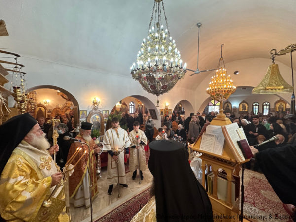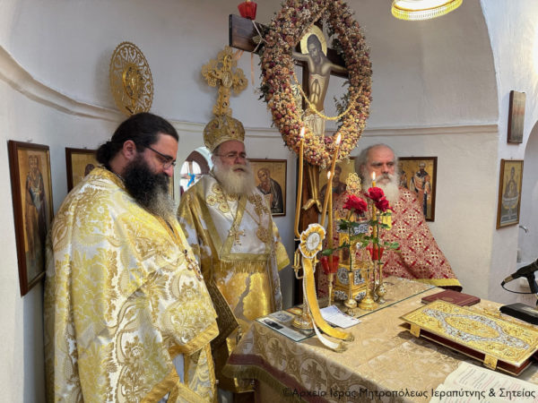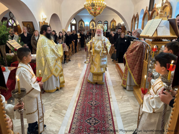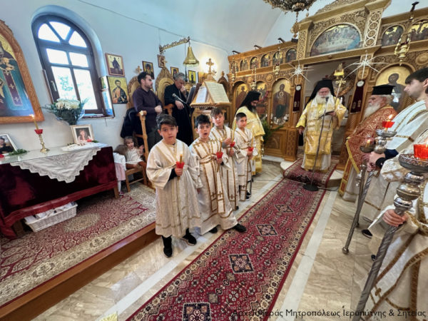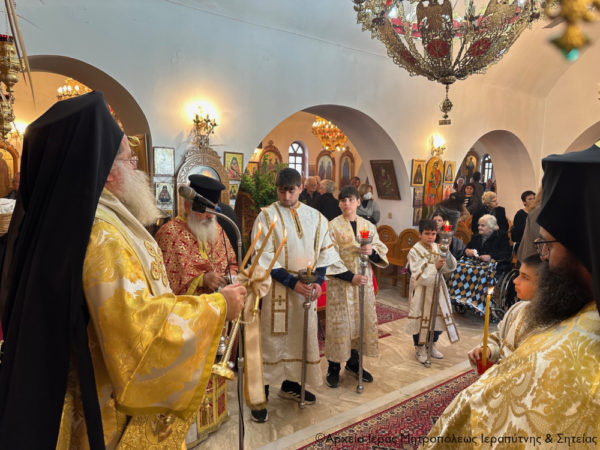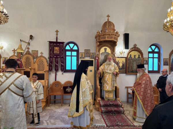 Στην Αρχιερατική Θεία Λειτουργία έλαβαν μέρος ο Πανοσιολ. Πρωτοσύγκελλος της Ιεράς Μητροπόλεως Αρχιμανδρίτης Αμβρόσιος Σκαρβέλης, ο Εφημέριος της Ενορίας Αιδεσιμολ. πρωτ. Γεώργιος Χατζάκης και ο Διάκονος Θεμιστοκλής Μπεϊνάς.