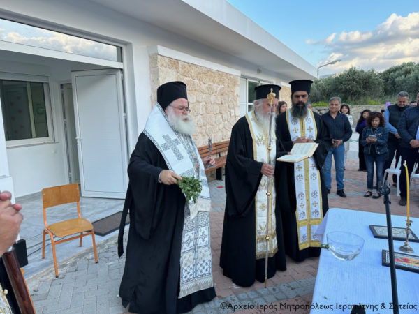 Ο Μητροπολίτης Ιεραπύτνης και Σητείας κ. Κύριλλος, συμπαραστατούμενος από τον Πρωτοσύγκελλο Αρχιμ. Αμβρόσιο Σκαρβέλη και Ιερείς της Σητείας, τέλεσε χθες τον Αγιασμό των εγκαινίων του νέου Κέντρου Δημιουργικής Απασχόλησης Ατόμων με Ειδικές Ανάγκες του Δήμου Σητείας «ΔΗΜΗΤΡΑ», σε νέες υπερσύγχρονες διαμορφωμένες εγκαταστάσεις στον χώρο του πρώην ΚΕΓΕ Σητείας.