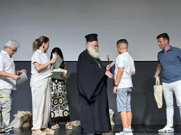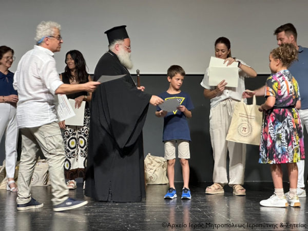 Ο Σεβασμιώτατος Μητροπολίτης κ. Κύριλλος συνεχάρη τους διοργανωτές και δώρισε εκ μέρους της Μητροπόλεως σε κάθε διακριθέντα μαθητή από ένα αντίτυπο της Καινής Διαθήκης, ευχόμενος ολόθυμα να έχουν πρόοδο στη μάθηση και επιτυχίες στη ζωή τους.