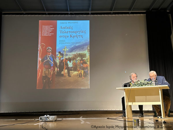 Ακολούθως ο συγγραφέας κ. Ψιλάκης με τον πλούσιο και δυνατό λόγο του μίλησε με ιδιαίτερη συγκίνηση για τις Λαϊκές τελετουργίες και τα έθιμα στον κύκλο του χρόνου ειδικά για την Επαρχία Σητείας και παράλληλα προβάλλονταν μοναδικές φωτογραφίες από την πλούσια σε παράδοση και λαϊκές τελετουργίες της Επαρχίας Σητείας.