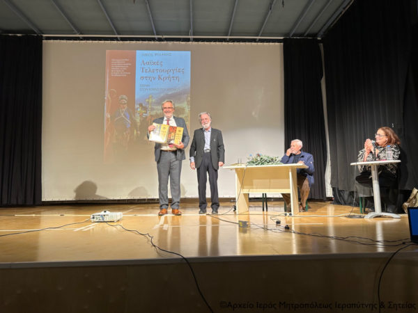 08/01/2024 09/01/2024 Ο Σεβασμιώτατος Μητροπολίτης Ιεραπύτνης και Σητείας κ. Κύριλλος, ανταποκρινόμενος σε σχετική πρόσκληση του Δήμου Σητείας, παρευρέθηκε το απόγευμα της κυριώνυμης ημέρας των Θεοφανείων, Σάββατο 6 Ιανουαρίου 2024, στην παρουσίαση του νέου βιβλίου του συγγραφέα Νίκου Ψιλάκη «Λαϊκές Τελουργίες στην Κρήτη. Έθιμα στον κύκλο του χρόνου» στο Πολύκεντρο Σητείας. Τον καταξιωμένο συγγραφέα, ποιητή, φωτογράφο και έγκριτο...