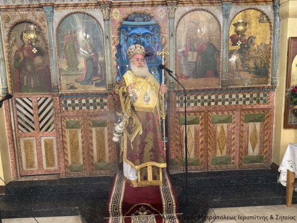 Την κυριώνυμο ημέρα της εορτής ο Σεβ. Μητροπολίτης Ιεραπύτνης και Σητείας κ. Κύριλλος χοροστάτησε στην ακολουθία του Όρθρου, ευλόγησε τους προσφερόμενους άρτους και στη συνέχεια ιερούργησε και κήρυξε κατάλληλα τον θείο λόγο.