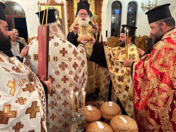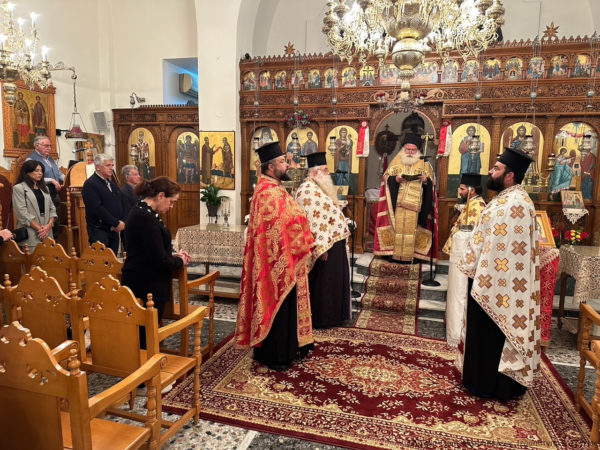 Στην ακολουθία χοροστάτησε ο Σεβασμιώτατος Μητροπολίτης Ιεραπύτνης και Σητείας κ. Κύριλλος, ο οποίος κήρυξε επίκαιρα τον θείο λόγο και ευλόγησε τους προσφερόμενους άρτους, ενώ στο τέλος τέλεσε Τρισάγιο υπέρ αναπαύσεως της ψυχής της μακαριστής Ευαγγελίας Γιανναδάκη, ευσεβούς δωρήτριας και ευεργέτιδος της Ενορίας.