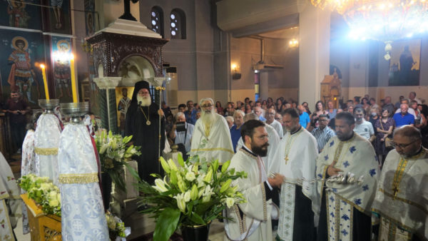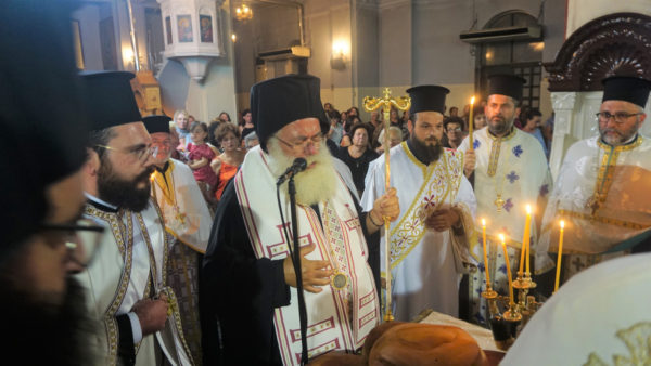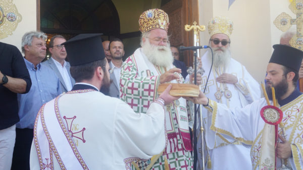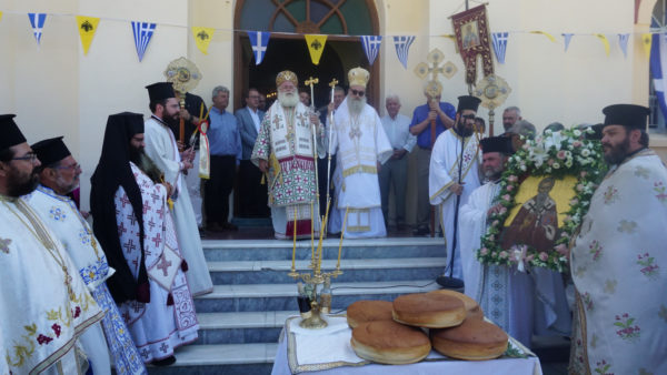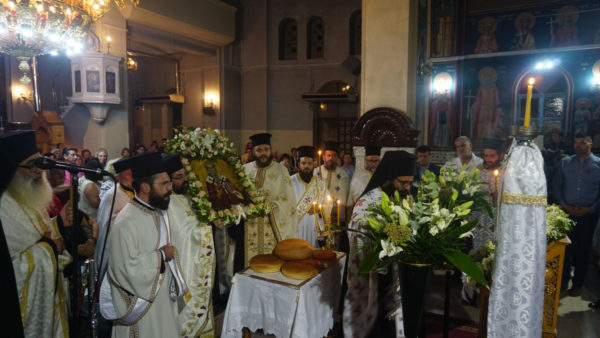 Ακολούθησε μικρά λιτανεία πέριξ του ναού και η ευλόγηση των άρτων στο προαύλειο.