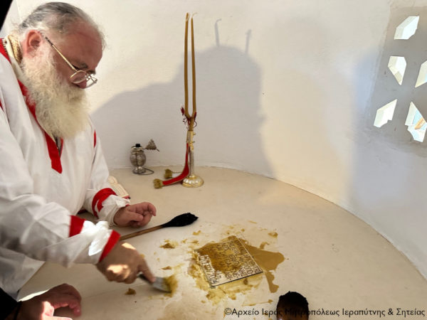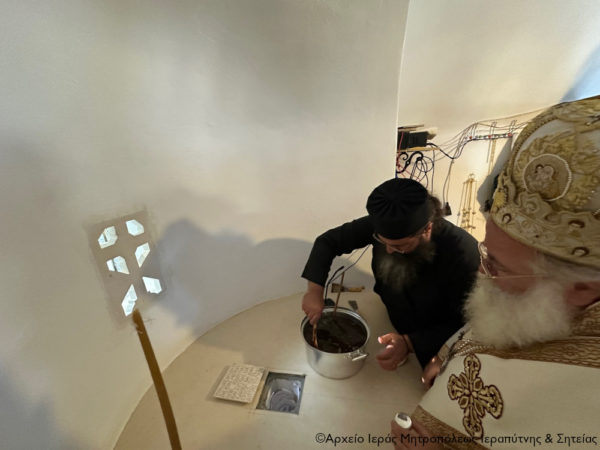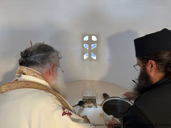 Το πρωί του Σαββάτου 24 Αυγούστου ο Σεβ. Μητροπολίτης κ. Κύριλλος χοροστάτησε κατά την ακολουθία του Όρθρου, προέστη στη λιτάνευση των αγίων λειψάνων πέριξ του ιερού ναού και στη συνέχεια προεξήρχε της τελετής των Ιερών Εγκαινίων και του καθαγιασμού της Αγίας Τράπεζας, και τέλεσε την πρώτη Θεία Λειτουργία στην καθιερωθείσα Αγία Τράπεζα του ιερού ναού.