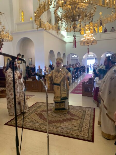Αμέσως, μετά την κλήση των Μαθητών του, άρχισε να κηρύσσει και να διδάσκει το ευαγγέλιο της Βασιλείας του Θεού. Όπως χαρακτηριστικά τόνισε ο Σεβ. «η Βασιλεία του Θεού εντός υμών εστιν», κατά τόν λόγο του Κυρίου, και όχι όπως νομίζουμε σε ένα άλλο τόπο μακρυά και εκτός από την καθημερινή πραγματικότητα που βιώνουμε, γι᾿ αυτό και προσευχόμαστε στην Κυριακή προσευχή, όπως μας δίδαξε ο Κύριος «ελθέτω η βασιλεία σου». Με την πίστη μας στον Τριαδικό Θεό και την τήρηση των εντολών Του μπορούμε να βιώνουμε και να προγευόμαστε μέσα στην καρδιά μας και σε όλη την ύπαρξή μας την αιώνια Βασιλεία του Θεού από αυτήν κιόλας τη ζωή, με το μυστήριο της Θείας Ευχαριστίας, η οποία συνεχίζεται και θα ολοκληρωθεί στα έσχατα. Τέλος, ευχήθηκε όλοι μας, κατά μίμηση των Αγίων Αποστόλων, να αποδεχθούμε το κάλεσμα του Χριστού και να τον ακολουθήσουμε, προσπαθώντας να αποδεσμευθούμε από ό,τι μας κρατά προσκολλημένους σε αυτή τη ζωή, και κυρίως από τον ίδιο μας τον εαυτό, που αποτελεί τον μεγαλύτερο εχθρό μας, και σε αυτό τον αγώνα δεν είμαστε μόνοι μας αλλά έχουμε συμμάχους και βοηθούς τους Αγίους της Εκκλησίας μας, την Υπεραγία Θεοτόκο και τον Ίδιο τον Αγωνοθέτη Κύριό μας Ιησού Χριστό.
