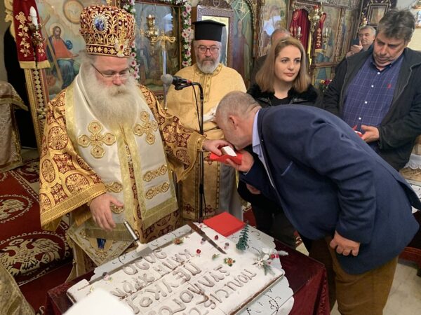 Στο τέλος της Αρχιερατικής Θείας Λειτουργίας ο Σεβ. Μητροπολίτης Ιεραπύτνης και Σητείας κ. Κύριλλος ευλόγησε εντός του πανηγυρίζοντος ναού τη Βασιλόπιτα του Πολιτιστικού Συλλόγου Πεύκων και ευχήθηκε εγκάρδια στην Πρόεδρο κ. Ολυμπία Γκιουμέ και στα μέλη του συλλόγου χρόνια πολλά με διαρκή την πρεσβεία των αγίων Τριών Ιεραρχών.