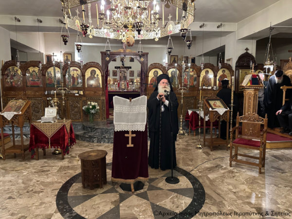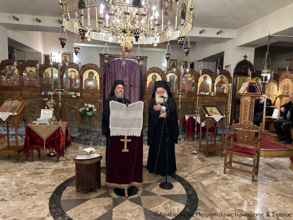 Κατά την ακολουθία του Κατανυκτικού Εσπερινού, που τέλεσε ο Ιερομόναχος π. Φιλήμων, συμπροσευχήθηκαν ο Πανοσιολ. Αρχιμ. Αμβρόσιος Σκαρβέλης, Πρωτοσύγκελλος της Ι. Μητροπόλεως και Ηγούμενος της Ι. Μονής Τοπλού, ο Ιερός Κλήρος της πόλεως και της ευρύτερης περιοχής Σητείας, και πολλοί ευσεβείς χριστιανοί.