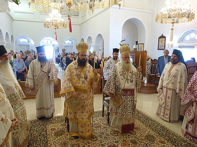 Μετά το πέρας της Θείας Λειτουργίας ο Σεβ. Μητροπολίτης κ. Κύριλλος προσφώνησε τον Σεβ. Μητροπολίτη Πέτρας και Χερρονήσου κ. Γεράσιμο, τον οποίο καλωσόρισε και ευχαρίστησε εγκάρδια διότι με τη συμμετοχή του λάμπρυνε την πανήγυρη του καθεδρικού ναού της πόλεως, μαζί με την εκλεκτή συνοδεία του, τον Πανοσιολ. Αρχιμ. Νικόδημο Κατρίνη, Ιεροκήρυκα της Ι. Μητροπόλεως Πέτρας και Χερρονήσου, τον Παν/το Αρχιμ. Άνθιμο και τους Οσιωτάτους Μοναχούς Νικόδημο και Γεράσιμο από την Ι. Μονή Αγίου Παύλου του Αγίου Όρους.