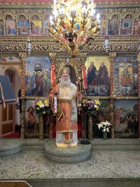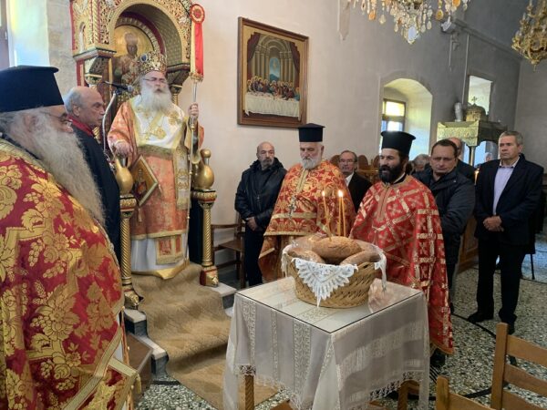 Ανήμερα της εορτής ο Σεβ. Μητροπολίτης Ιεραπύτνης και Σητείας κ. Kύριλλος χοροστάτησε στην ακολουθία του Όρθρου, ευλόγησε τους προσφερόμενους άρτους και στη συνέχεια τέλεσε τη Θεία Λειτουργία και κήρυξε επίκαιρα τον θείο λόγο.