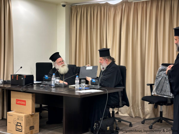 Αφού προηγήθηκε σύντομη ενημέρωση των Κληρικών από τον Σεβ. Μητροπολίτη κ. Κύριλλο για τρέχοντα διοικητικά και ποιμαντικά ζητήματα, όπως είναι η Εγκύκλιος της Ιεράς Επαρχιακής Συνόδου της Εκκλησίας της Κρήτης για τις Βαπτίσεις, πραγματοποιήθηκε η διανομή των ηλεκτρονικών υπολογιστών, των εκτυπωτών και του λοιπού εξοπλισμού.