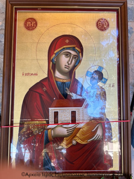 Ακόμα, ο Σεβασμιώτατος αναφέρθηκε στην ιστορία του ιερού ναού και υπογράμμισε ότι ανεγέρθηκε πριν από εκατό και πλέον χρόνια από τους ευλαβείς προγόνους μας, οι οποίοι απέδωσαν στο ναό της Παναγίας το προσωνύμιο «Κοτσυφιανή», από το πουλί κοτσυφός, απόδειξη ότι θεωρούσαν την Υπεραγία Θεοτόκο οικεία προς αυτούς, όπως μαρτυρούν και τα πολυάριθμα άλλα προσωνύμια και επίθετα που ο ευσεβής λαός μας της έχει αποδώσει.