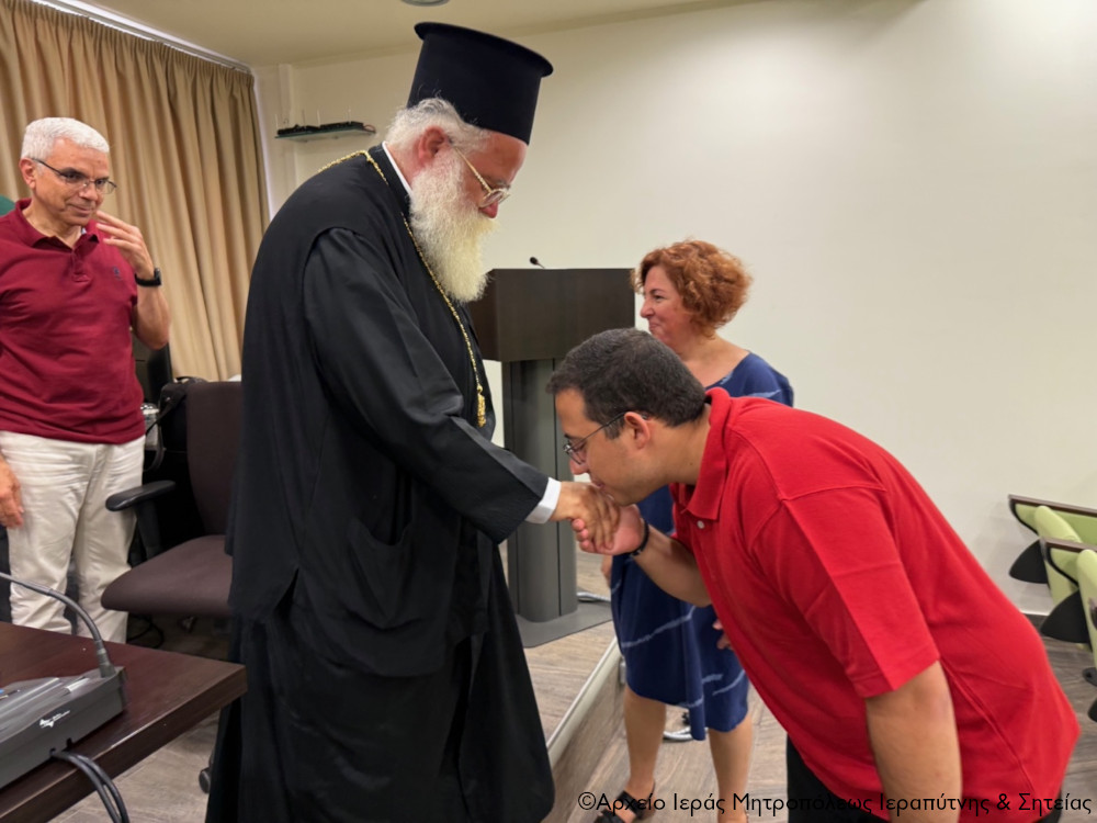 Μετά το πέρας της διαδικασίας των εξετάσεων ο Σεβασμιώτατος Μητροπολίτης Ιεραπύτνης και Σητείας κ. Κυρίλλου ευχαρίστησε εγκάρδια τον Πρόεδρο και τα μέλη της Εξεταστικής Επιτροπής και εξέφρασε την ευαρέσκειά του για το επιτελούμενο έργο στη Σχολή Βυζαντινής Μουσικής της Ιεράς Μητροπόλεως «Άγιος Ανδρέας ο Κρήτης», με σκοπό τη μεταλαμπάδευση της ιεροψαλτικής τέχνης και της παραδοσιακής μουσικής μας, για τη στελέχωση των ιερών αναλογίων με καταρτισμένους ιεροψάλτες.