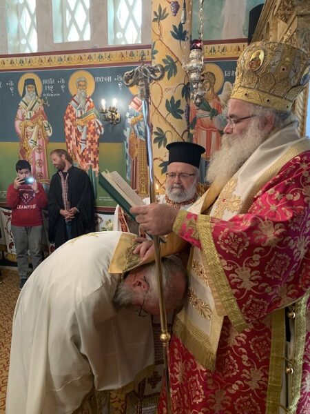 Πριν την Απόλυση, ο Σεβασμιώτατος απένειμε το οφφίκιο του Οικονόμου και Πνευματικού της Ιεράς Μητροπόλεως στον επί δεκαεννέα συναπτά χρόνια υπηρετούντα άοκνα στην Ενορία Ορεινού ως Εφημέριο π. Μηνά Κρητικό, αναγνωρίζοντας και τιμώντας την πολυετή εκκλησιαστική διακονία και το εκκλησιαστικό του φρόνημα, και του ευχήθηκε ο σήμερα εορταζόμενος Άγιος Νεκτάριος να τον ενισχύει στον ιερατικό του αγώνα και να συνεχίσει με περισσότερο ζήλο, ευσέβεια και αυταπάρνηση να διακονεί τον ευλογημένο και φιλάγιο λαό της ιστορικής και παραδοσιακής αυτής Ενορίας.