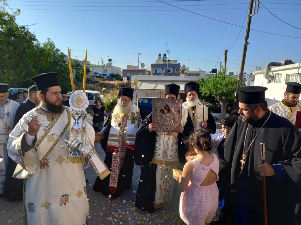 Ο Σεβασμιώτατος Μητροπολίτης Ιεραπύτνης και Σητείας κ. Κύριλλος μετέφερε την εικόνα της Παναγίας της Ελεούσας στον πανηγυρίσαντα Ιερό Ναό Αγίου Ανδρέου στο Αρκαλοχώρι