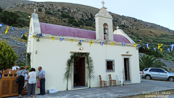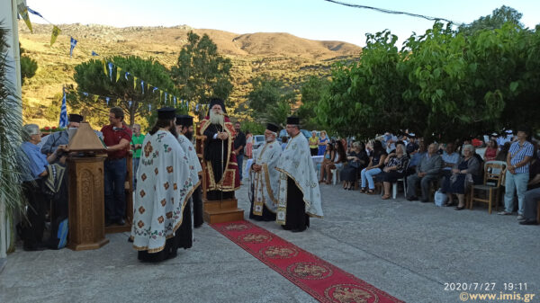 Το εσπέρας της Τρίτης 27 Ιουλίου 2020 τελέσθηκε ο Μέγας πανηγυρικός Αρχιερατικός Εσπερινός επί τη εορτή της μνήμης της Οσίας Ειρήνης της Χρυσοβαλάντου στον ομώνυμο Ιερό Ναό στη Δάφνη Σητείας, με τη συμμετοχή αρκετών πιστών.