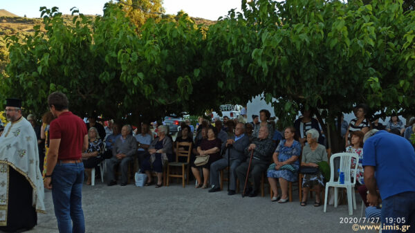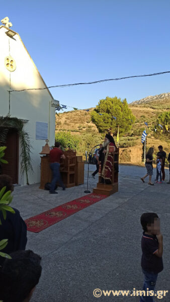 Στην ακολουθία χοροστάτησε στον αύλειο χώρο, συμπαραστατούμενος από Ιερείς, ο Σεβ. Μητροπολίτης Ιεραπύτνης και Σητείας κ. Κύριλλος, ο οποίος ευλόγησε τους προσφερόμενους άρτους και κήρυξε επίκαιρα τον θείο λόγο.