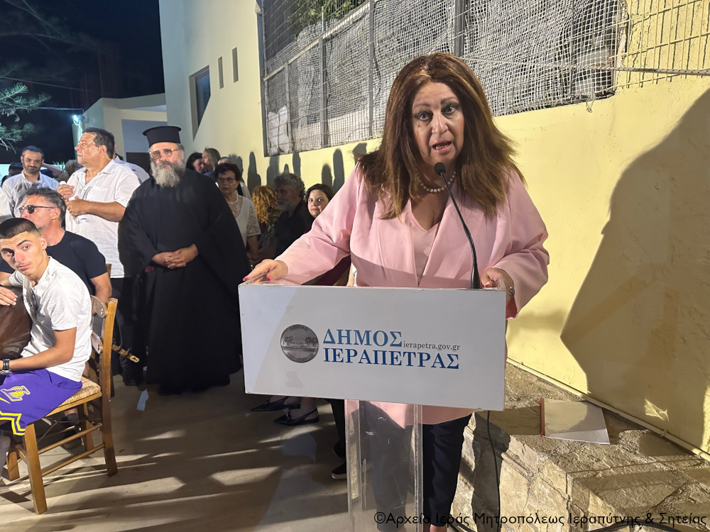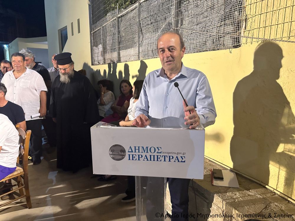 Ακολούθησε ο χαιρετισμός του Δημάρχου Ιεράπετρας κ. Εμμανουήλ Φραγκούλη, ο οποίος εξέφρασε τη συγκίνησή του για τη μεγαλειώδη αυτή βραδιά, καθώς η εκδήλωση συνδύασε τη Μικρασία με την Κρήτη, και τόνισε την έντονη παρουσία του Μικρασιατικού Ελληνισμού στον τόπο μας σε σημείο που να μπορούσαμε να πούμε ότι η Ιεράπετρα είναι πρώτα οι Μικρασιάτες και έπειτα οι εντόπιοι Γεραπετρίτες.