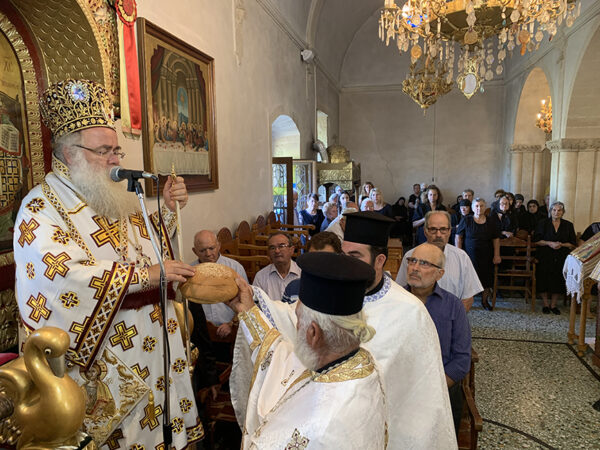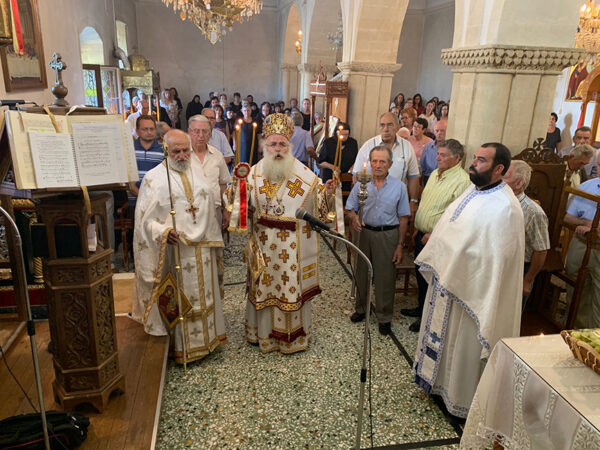 Στην ακολουθία του Όρθρου χοροστάτησε ο Σεβ. Μητροπολίτης Ιεραπύτνης και Σητείας κ. Kύριλλος, ο οποίος ευλόγησε τους προσφερόμενους άρτους και στη συνέχεια ιερούργησε, κήρυξε επίκαιρα τον θείο λόγο και μετά την Οπισθάμβωνο ευχή, κατά το εκκλησιαστικό έθος, ευλόγησε τα πρώτα σταφύλια.
